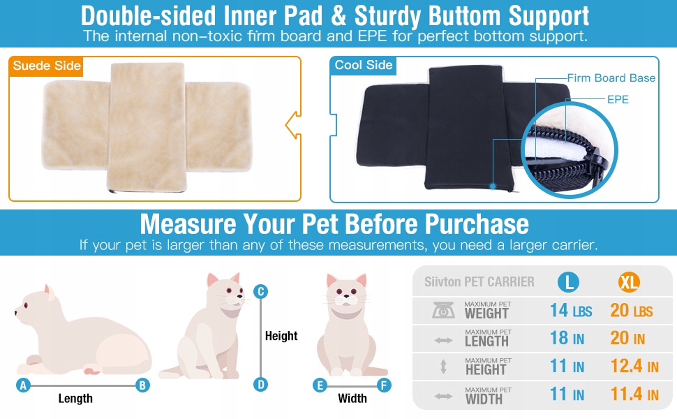 Информация об этом продукте h1> - Перед покупкой обратите внимание на руководящие принципы для измерения домашних животных - она подходит для домашних животных до 45 см в длину X 25 см и до 6,4 кг; Обитель Siivtto оснащен оксфордской доской и EVA высокой плотности, которая обеспечивает защиту, сохраняет вертикальное, твердое и безопасное положение для ваших животных. Благодаря мгновенному молнии, как вверху, так и на стороне вашего очаровательного щенка, вы можете легко положить и удалить из нашего ребенка. Стороны, чтобы создать дополнительное место для нашего кошачьего/собачьего ребенка, чтобы ваши кошки оставались комфортными. Это позволяет вашему животному более удобному движению и уменьшает беспокойство, связанное с закрытием. на багаже или носите его вверх по верхней ручке. Универсальное использование для автомобилей или всех видов путешествий, а также уютная кровать для флисовых животных можно полностью удалить и промыть в стиральной машине
