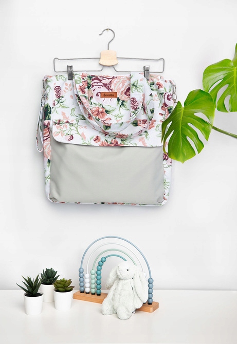 Большая вместительная сумка для мамы, отлично подходит для прогулок, покупок или в больницу. Благодаря большим размерам, он будет размещать все необходимые аксессуары. Передний карман, закрытый с осторожным магнитом, будет разместить все, что должно быть под рукой. Интерьер сумки закончен с полиэфирной подкладкой. Необходимым элементом сумки является прочные, красочные ручки, благодаря которой его можно повесить на раме тележки.