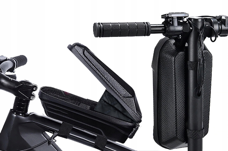 🛴 Сумка на руль самоката жесткая и водонепроницаемая, имеет внутри несколько отделений и перфорацию, благодаря чему вещи не выпадут при открытии сумки.