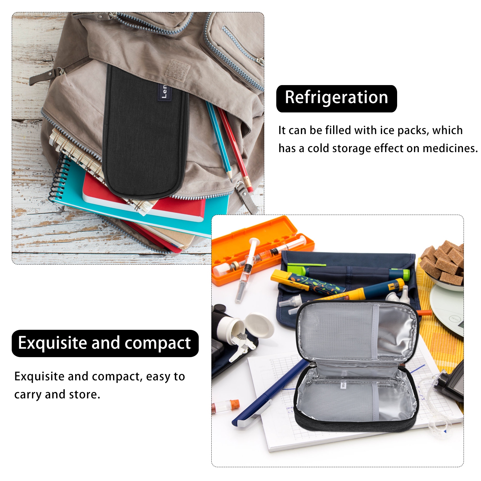 Это инсулиноизоляционный мешок, изготовленный из прочного и долговечного материала, который можно использовать в течение длительного времени. Он хорошо сохраняет тепло и холод, что очень подходит для пациентов с диабетом, которым необходимо выходить на улицу и носить с собой инъекции.