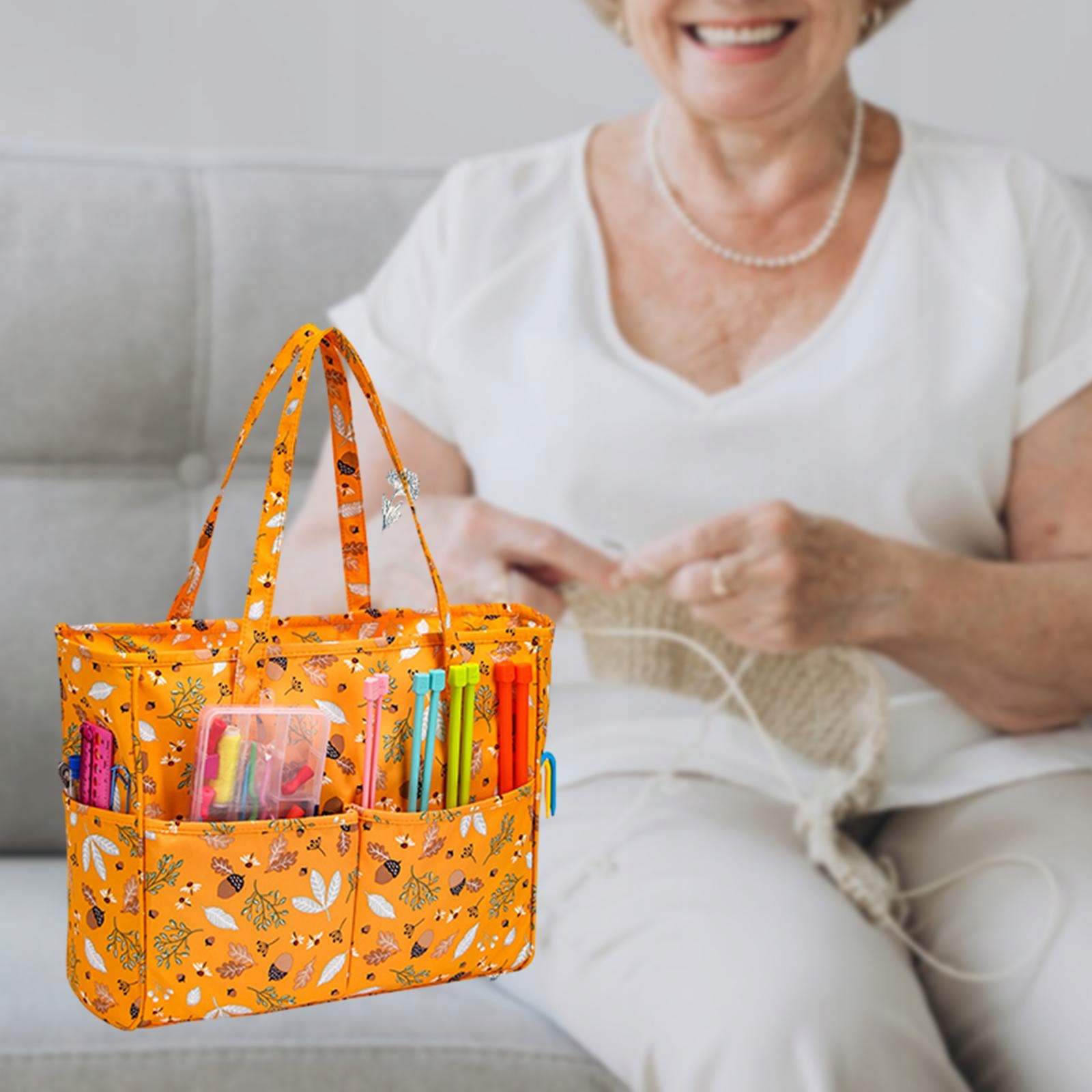 [Большая вместимость] Сумка для хранения пряжи Идеально подходит для больших размеров. проекты, требующие нескольких клубков шерсти, вязания и других аксессуаров.