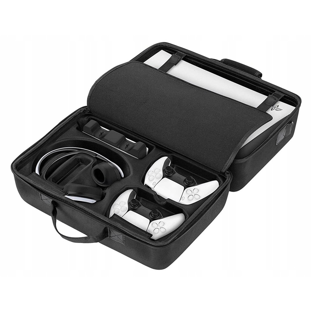 Sony PlayStation 5 PS5 Suitcess Best Shreation, новейшие новые модели, выделенный, усиленный корпус с двойной молнией для всех моделей консолей Sony PlayStation 5, PS5 изготовлены из высококачественных материалов. Обложка чрезвычайно долговечна и идеально защищает консоль и все аксессуары для двойных ручек, зарядных устройств, наушников, станций стыковки, электростанций и сигнальных станций, игр, наушников и т. Д.). Чифт имеет особый ремешок, так что вы можете повесить его через плечо и носить его, как сумка. Вы также можете использовать практическую, удобную профилированную ручку, которую можно носить как чемодан.