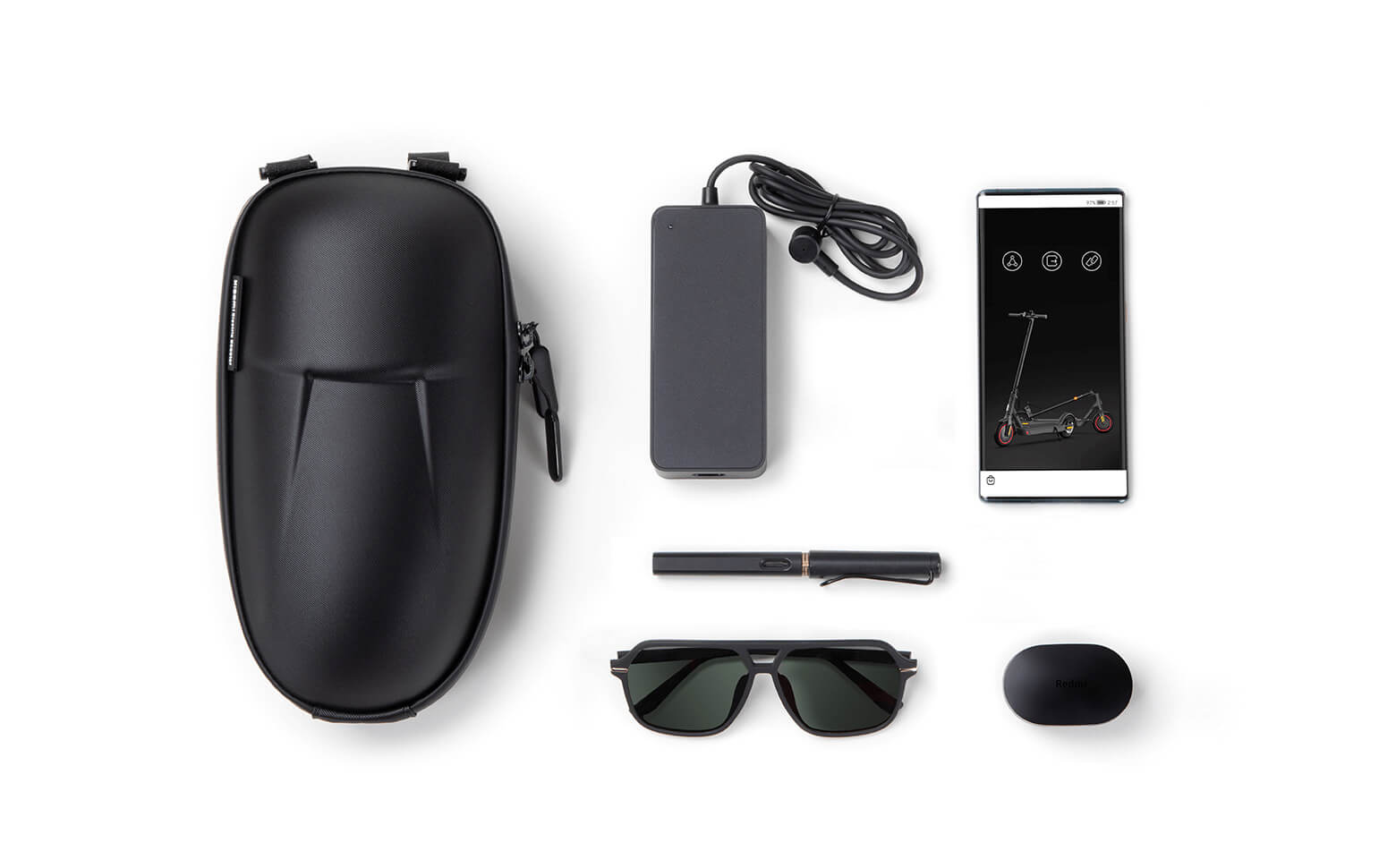 Сумка также разместит зарядное устройство для скутера, банк питания, смартфон, солнцезащитные очки, кошелек и набор ключей.* Ниже приведен пример фото