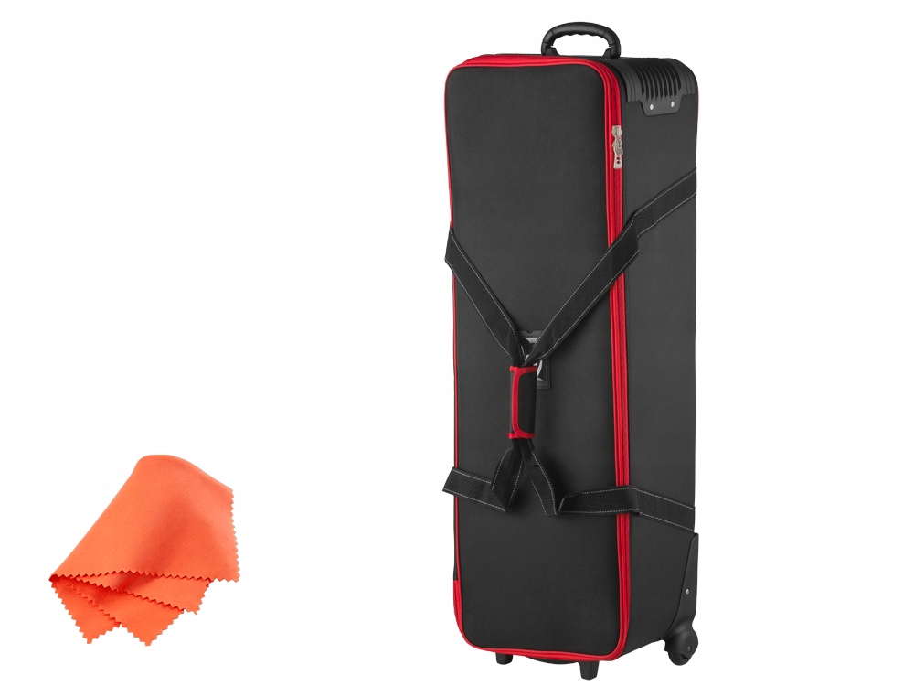 Жесткая конструкция сумки, стенки которой заполнены толстым слоем амортизирующей пены, очень хорошо защищает перевозимое оборудование от ударов. повреждать. Перегородки на липучках позволяют подогнать внутреннее пространство под перевозимое оборудование, а ремни внутри сумки дополнительно зафиксируют его. Сумка изготовлена из высококачественной, устойчивой к истиранию нейлоновой ткани. Дно сумки усилено толстыми пластиковыми полосками, которые одновременно служат ножками. На одной из коротких сторон расположены два колеса и ножка, поддерживающая сумку в вертикальном положении, а на противоположной стороне – прочная пластиковая ручка. Кроме того, у сумки есть два ушка, застегивающиеся клапаном из широкой капроновой ленты.