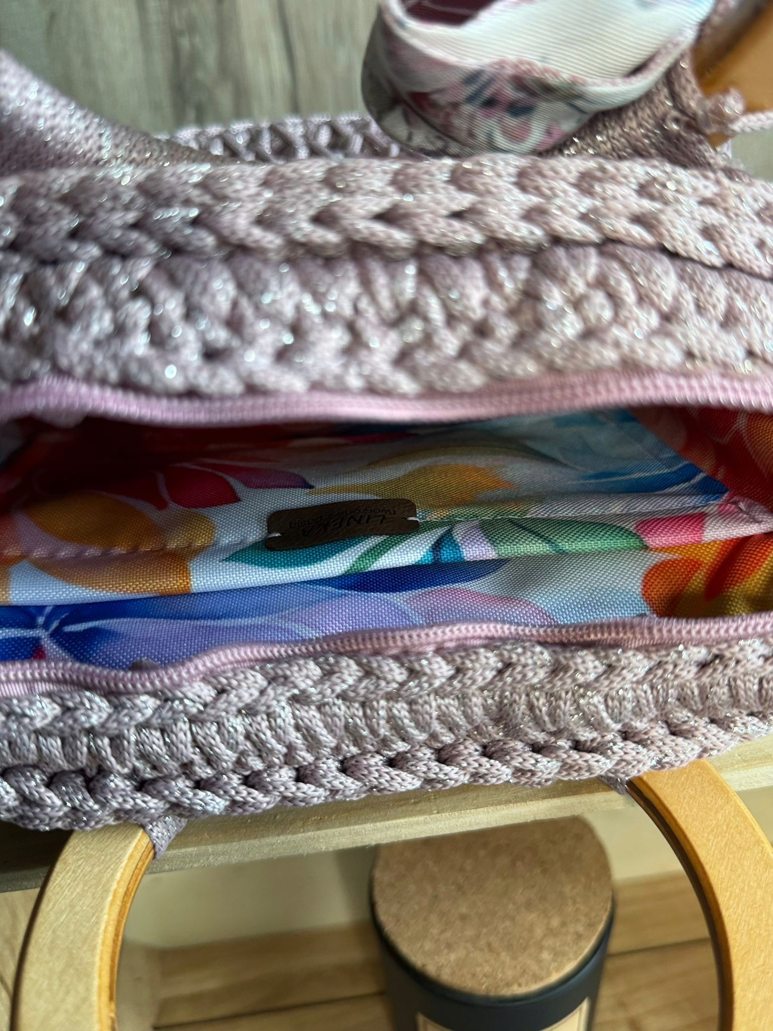 Lineka Crochet Sumbag - грязный розовый с серебряной нитью