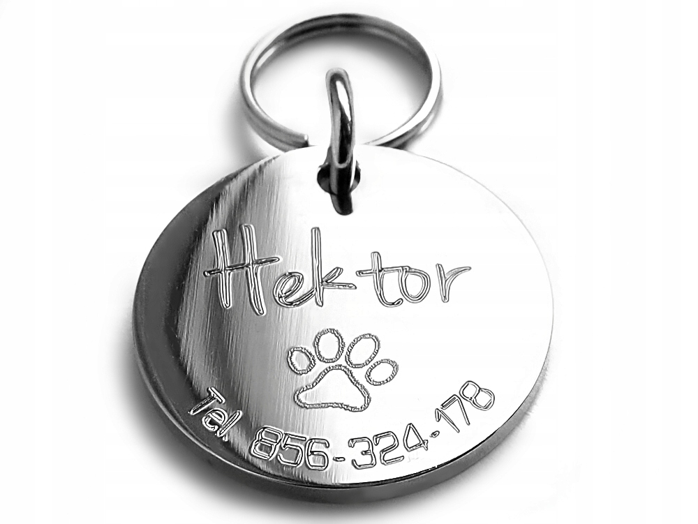 Идентификационная бирка / бирка для средней собаки или крупной кошки из высоко- Качественная хирургическая (драгоценная) стальная глянцевая, круглая подвеска диаметром 20 мм, золото или серебро. Диаметр кольца крепления бирки к ошейнику: 15 мм.