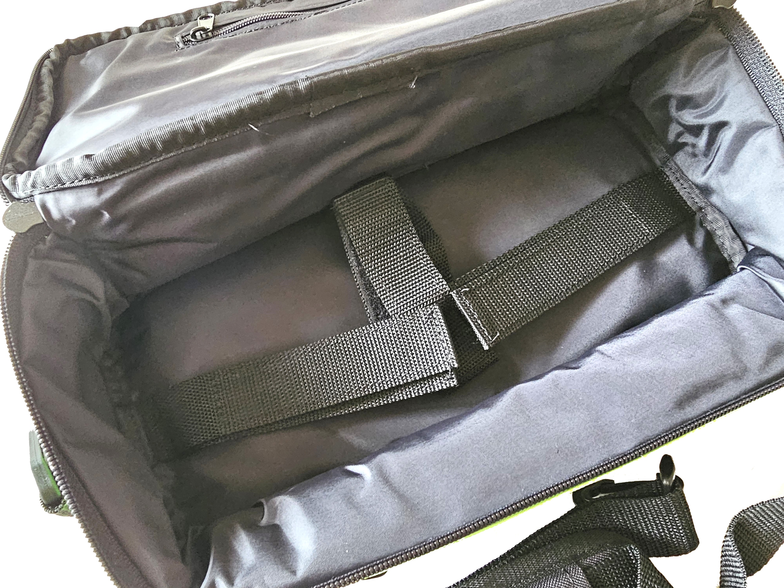 - Внутри находятся 2 ремня на липучке для крепления шлангов и один посередине.