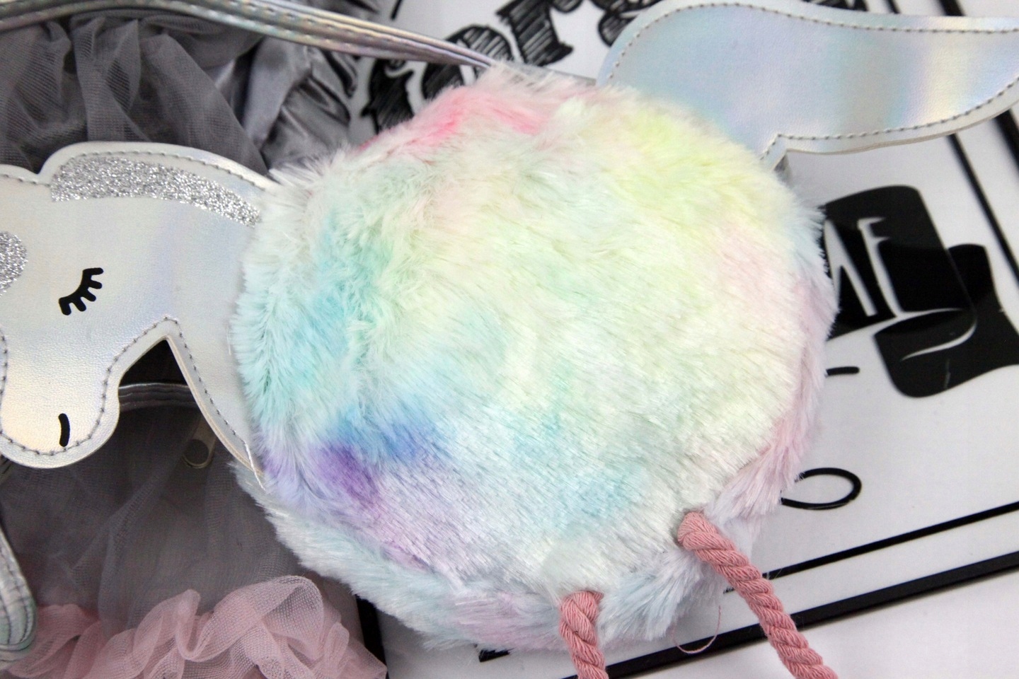 Красивая и оригинальная сумка-единорог на голографическом ремешке. Лошадь из мягкого меха. Сумка очень легкая, что делает ее идеальным дополнением повседневного стиля. Голова, копыта и хвост из голографической экокожи.