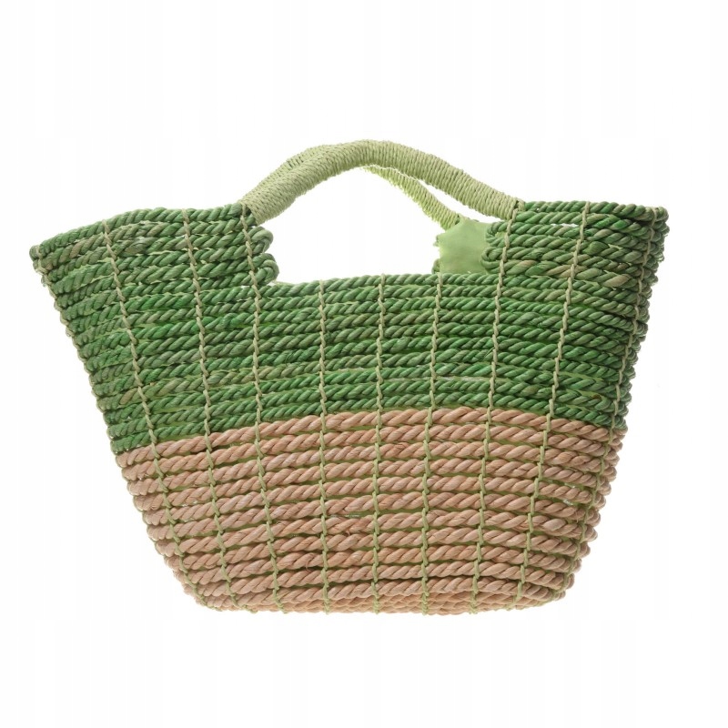 Двухцветная сумка-корзина. Сумка зеленая. Низ сумки экрю, верх другого цвета. Красиво сплетено. Застегивается на молнию, внутри есть два небольших кармана.