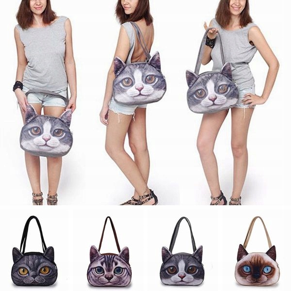 Все будут вам завидовать, когда вы идете на прогулку, в школу или на работу с нашим прекрасным котенком на плече :) А этот котенок представляет собой практичную, довольно вместительную и очень эффектную сумку с 3D-эффектом. Качественный принт на передней части сумки очень напоминает настоящую морду животного, а ее большие красивые глаза могут даже растрогать вас ;) В сумку легко поместится несколько блокнотов или книг, планшет или нетбук. Внутри есть дополнительный карман на молнии и два открытых кармана для мобильного телефона и других мелочей. Сумка оснащена двумя ремнями длиной примерно 70 см каждая.