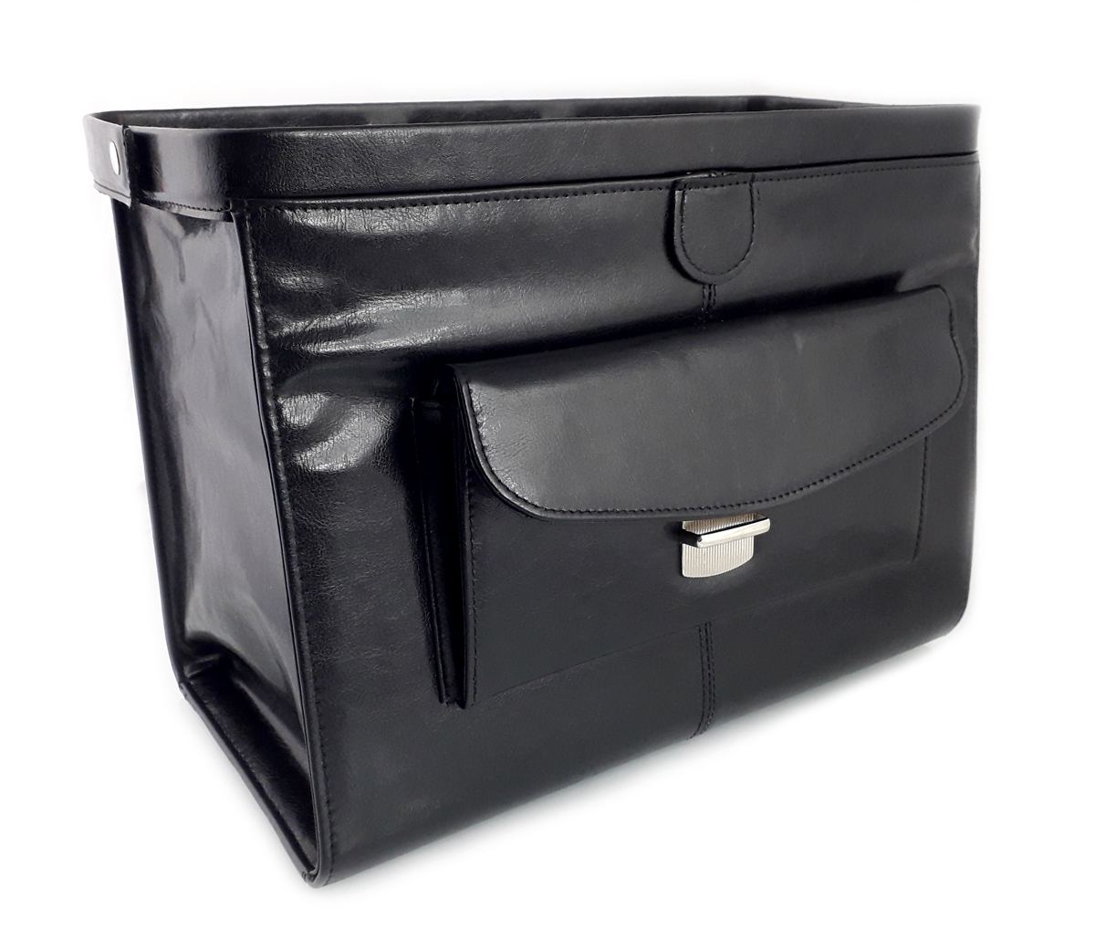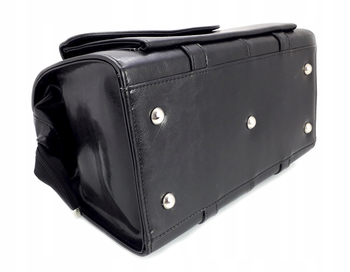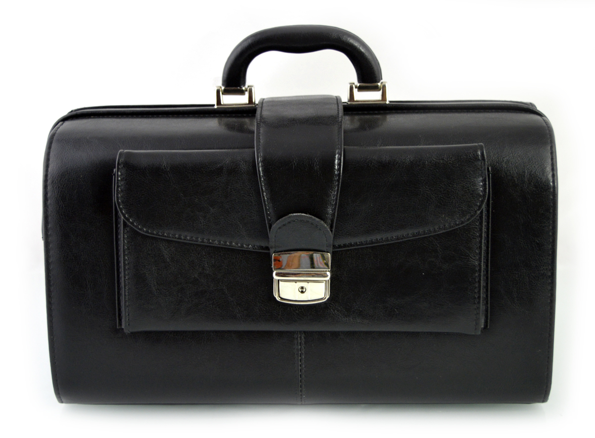Кожаная врачебная сумка-кофр с широким доступом внутрь на застежке-крючке