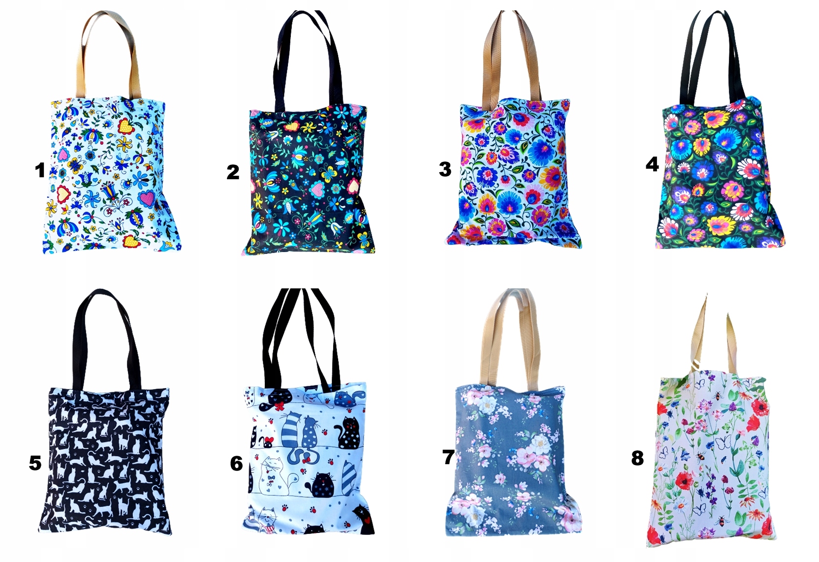 Идеально подходит для покупок и повседневного использования! Большая сумка изготовлена из разноцветного хлопка с рисунком, а уши - из прочной и толстой ленты.