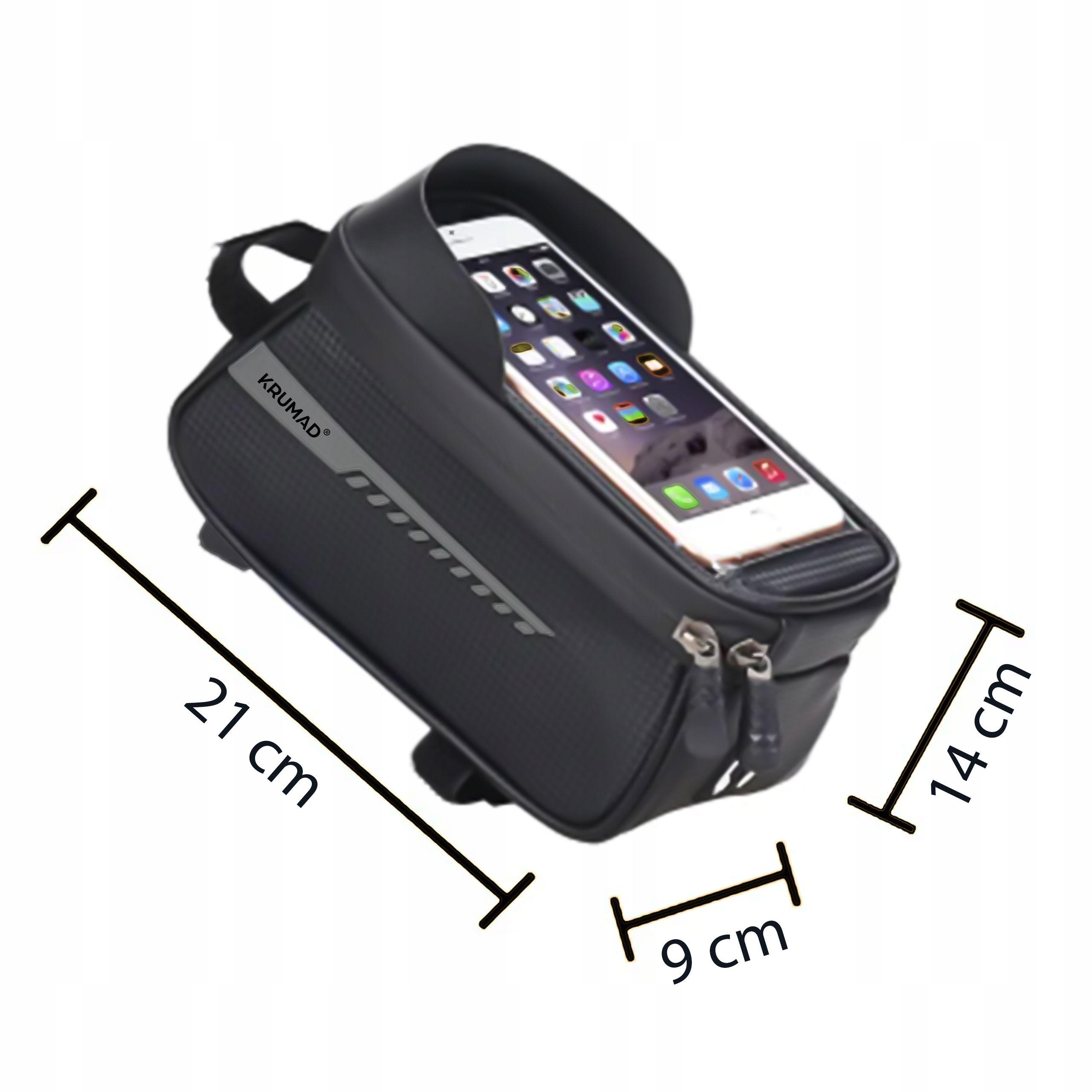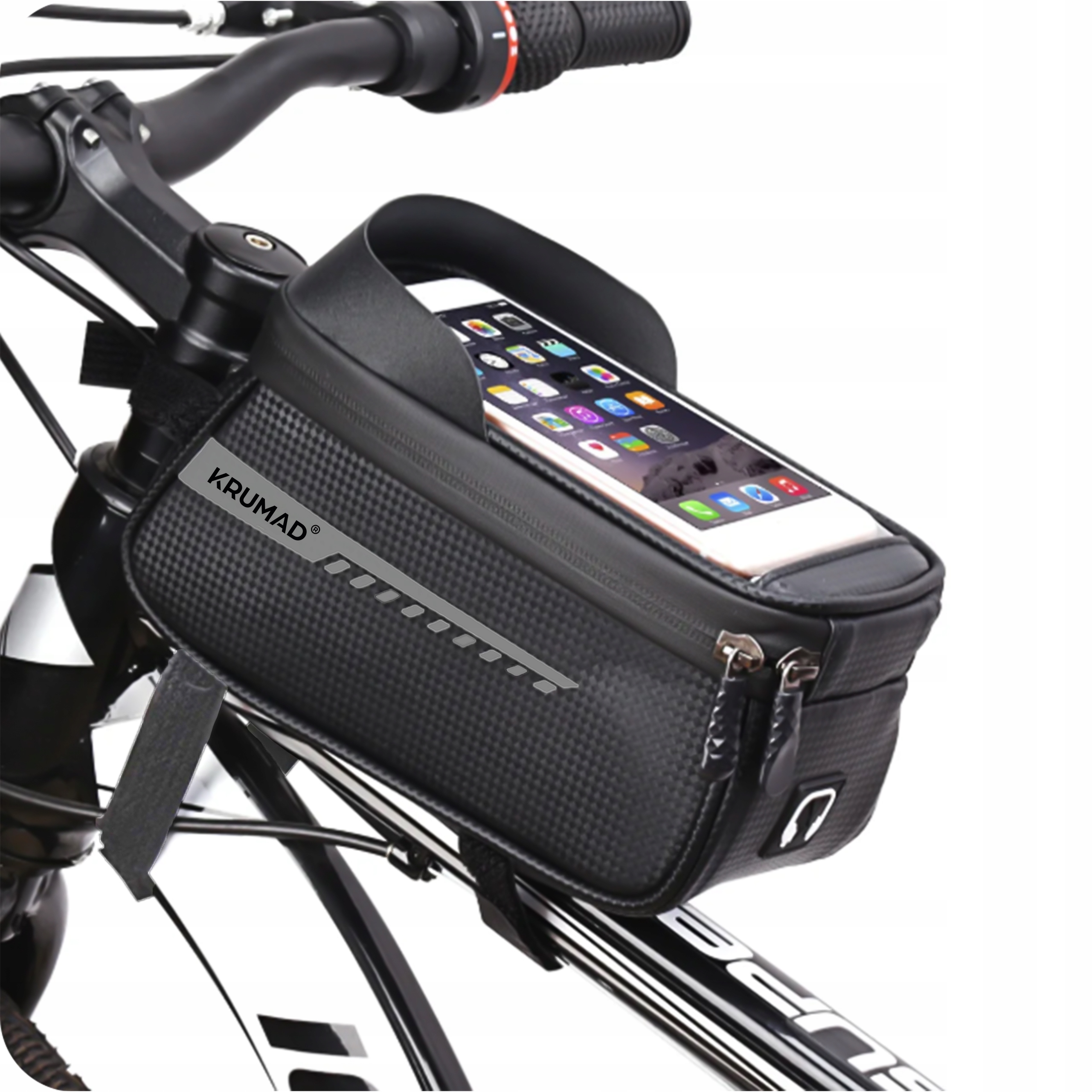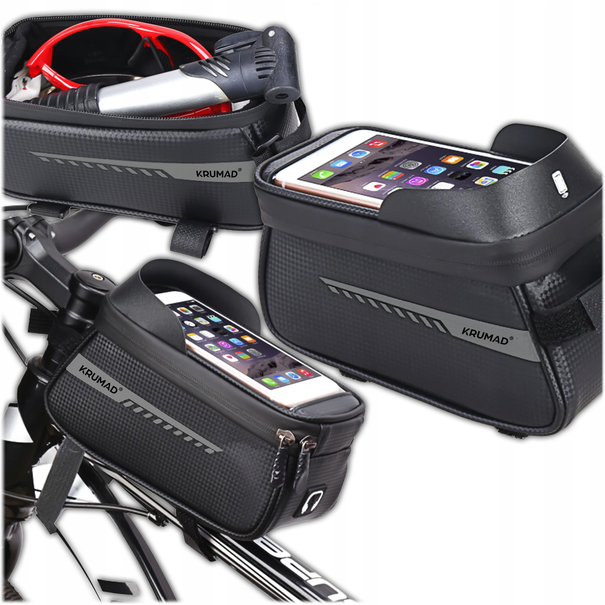 Сумка KRUMAD® на велосипедную раму с держателем для телефона | Водонепроницаемый | Сенсорное окно | Смартфон до 6,7 дюймов