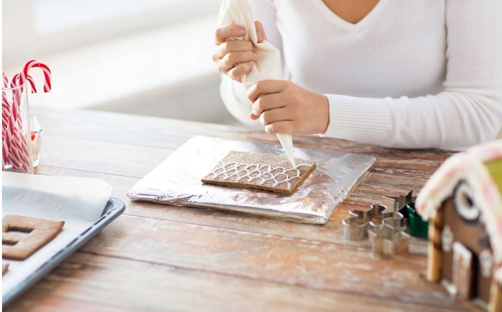 1. ВЫВЕРНИТЕ ФОЛЬГУ И НАПОЛНИТЕ ПОЛОВИНУ ТРЕУГОЛЬНИКА КРЕМОМ