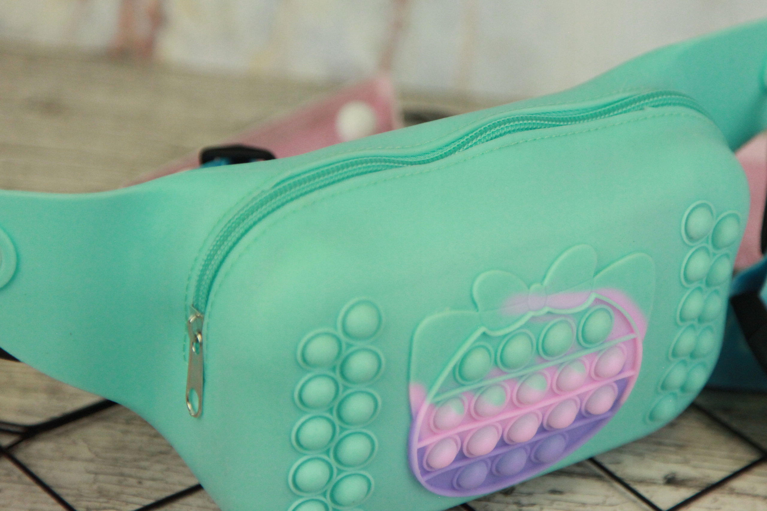 Очаровательная поясная сумка мятного цвета. Изготовлен из силикона. Идеально подходит для хранения мелких вещей.