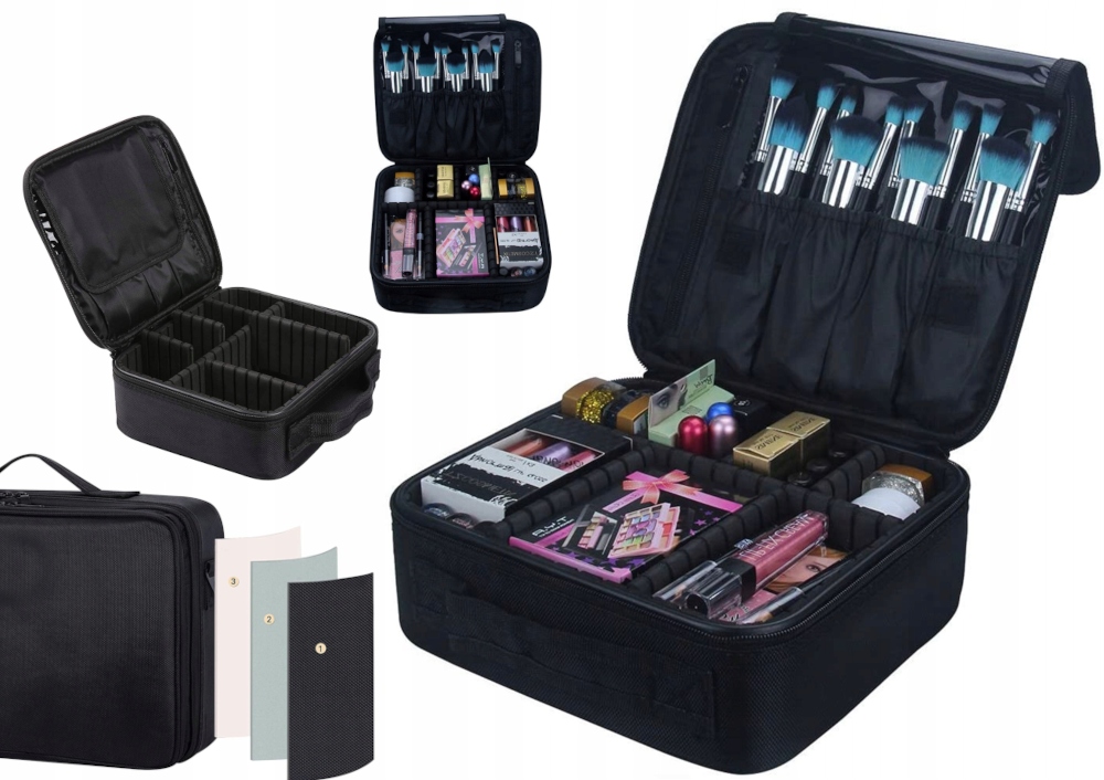 ✅ Регулируемые отделения и дополнительный карман на молнии для удобства и легкого доступа к косметике