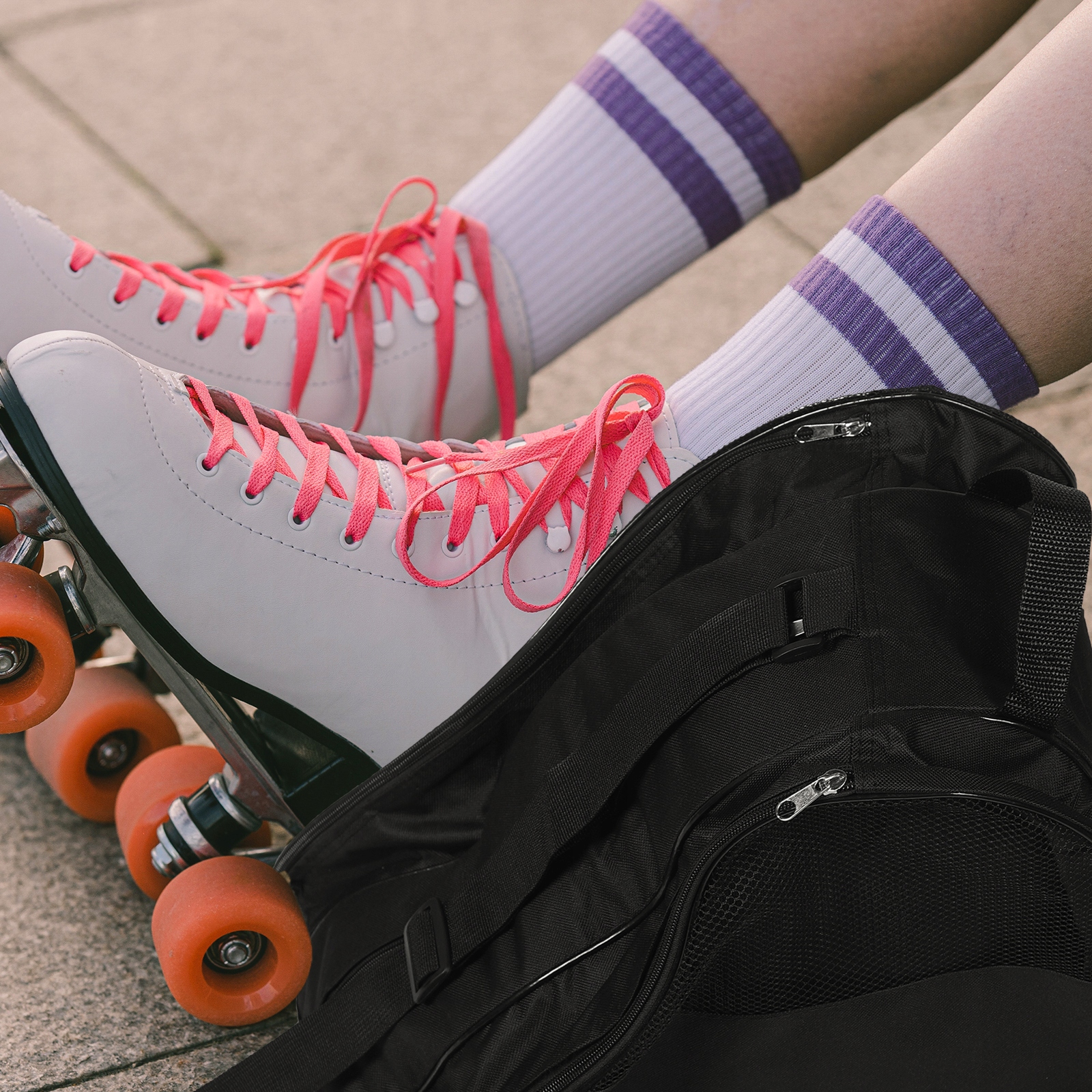 Эта удобная сумка для хранения облегчает переноску роликовых коньков.