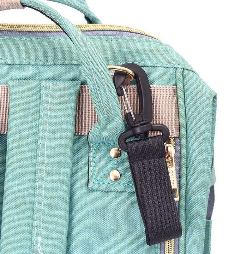 - Сумку можно прикрепить к коляске с помощью 2-х крючков, прикрепленных к сумке (сумка имеет направляющие для крепления крючков)