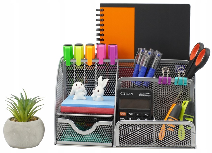 Незакрепленные скрепки, куски бумаги, лежащие перед монитором, ручка рядом с ковриком для мыши — это решения, которые работают только на время. Благодаря металлическому настольному органайзеру все будет на своих местах и не потеряется после одного перемещения. Невероятный комфорт, который он обеспечивает, крайне положительно скажется на качестве работы или учебы.