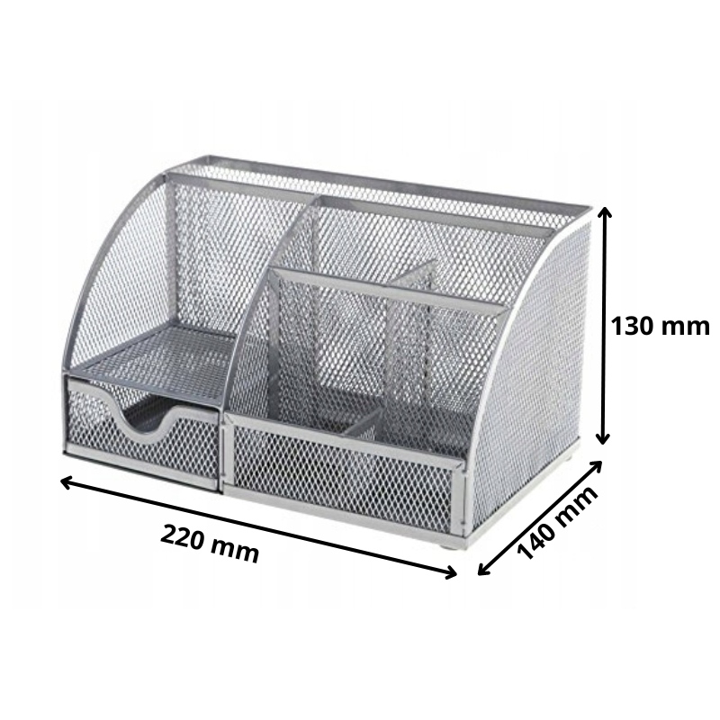 Элегантный и функциональный настольный органайзер из металлической сетки, покрытой прочным лаком, станет идеальным решением для организации рабочего места. Благодаря своим размерам 220x140x130 мм ящик для инструментов эффективно использует пространство на столе, обеспечивая легкий доступ ко всем необходимым аксессуарам. Это идеальный выбор для тех, кто ценит функциональность и эстетику на своем рабочем месте. Идеально подходит для офиса, домашнего кабинета или студенческого помещения.