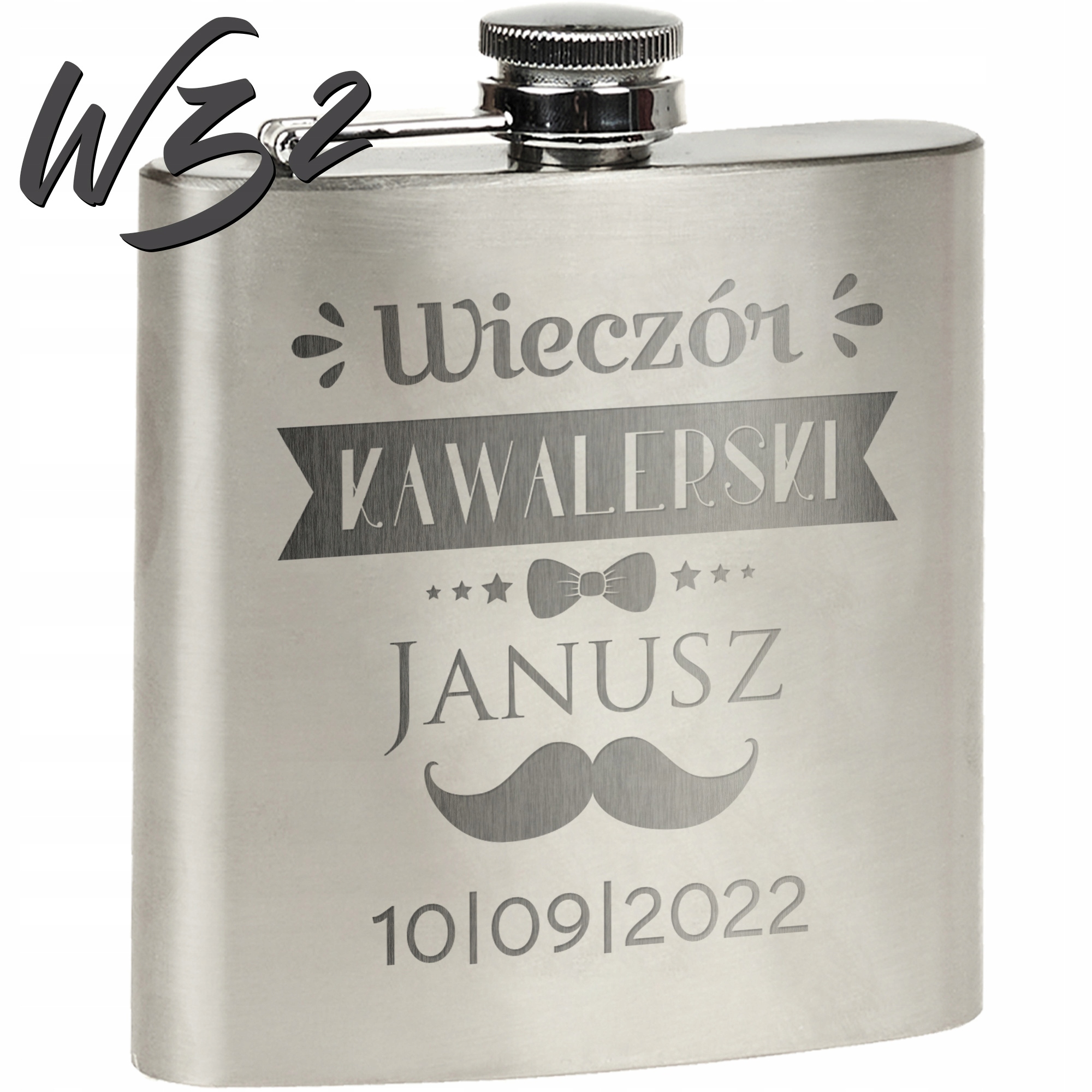 Фляга из НЕРЖАВЕЮЩЕЙ СТАЛИ МЕТАЛЛИЧЕСКАЯ для мальчишника с гравировкой
