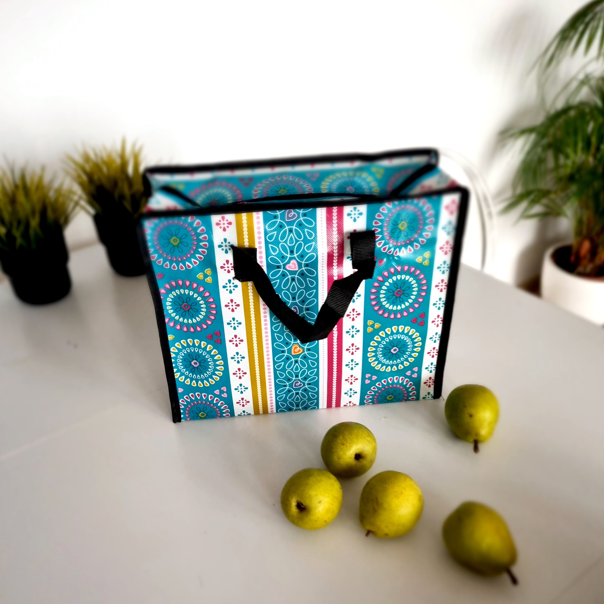 Практическая сумка, изготовленная из сильного пластика, водонепроницаемого, во многих модных, красочных узорах.