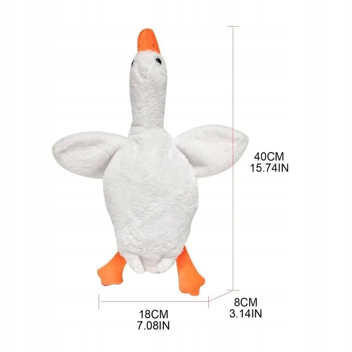 - Плюшевая игрушка «Гусь» изготовлена из плотной, приятной для кожи и нежной ткани, внутренняя часть наполнена очень пушистым и мягким материалом, поэтому вы сможете в полной мере насладиться мягкостью пуха.