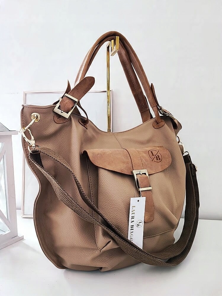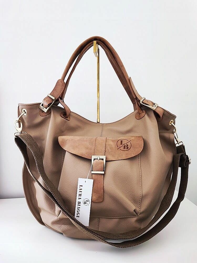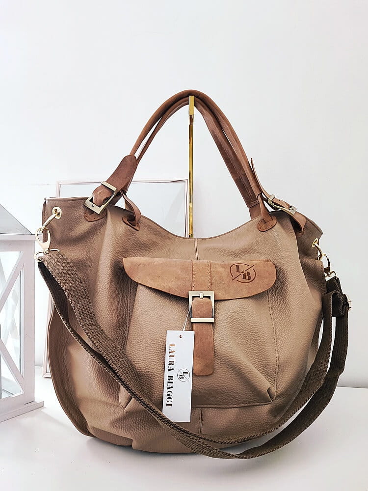 Сумка Laura Biaggi изготовлена из высококачественной экологической кожи темно-бежевого цвета.