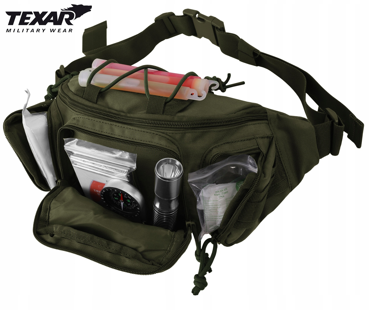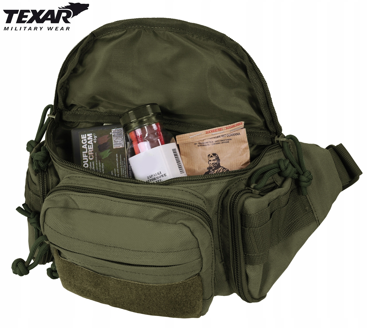 ВНИМАНИЕ! Предметом предложения является сумка TexarПоясная цвета Олива. Остальные элементы используются для визуализации функциональности.