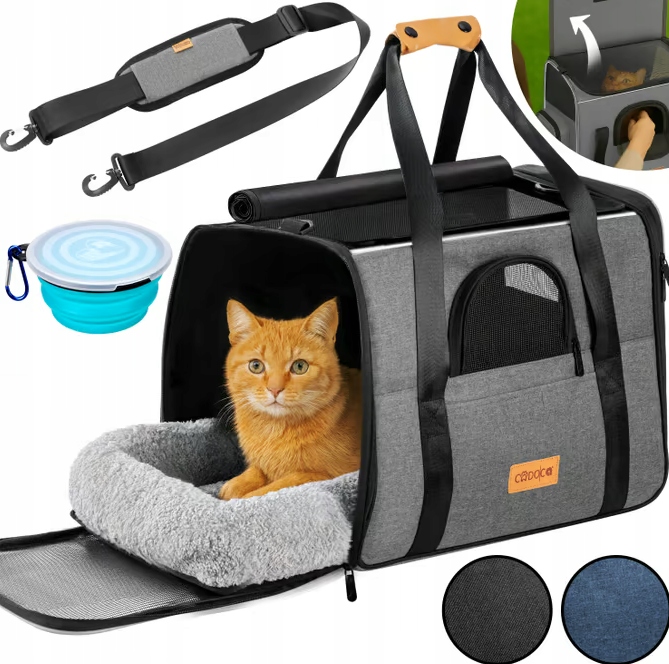 Переноска для домашних животных CADOCA® — идеальный компаньон для путешествий или визитов к ветеринару с кошкой, маленькой собакой или другими мелкими животными весом до 20 кг. Он обеспечит вашему четвероногому другу уютное убежище, безопасность и функциональность. Двусторонняя подушка с летней и зимней стороной обеспечивает комфорт и ее можно стирать.
