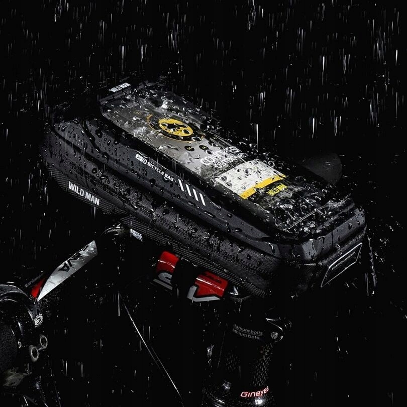 Велосумка 2 в 1 от Wild Man, служащая водонепроницаемый чехол для телефона и хранилище для всех видов велосипедов из мелких предметов. Прозрачный сенсорный экран из термопластичного полиуретана, обеспечивающий чувствительность к касанию более 90 %.