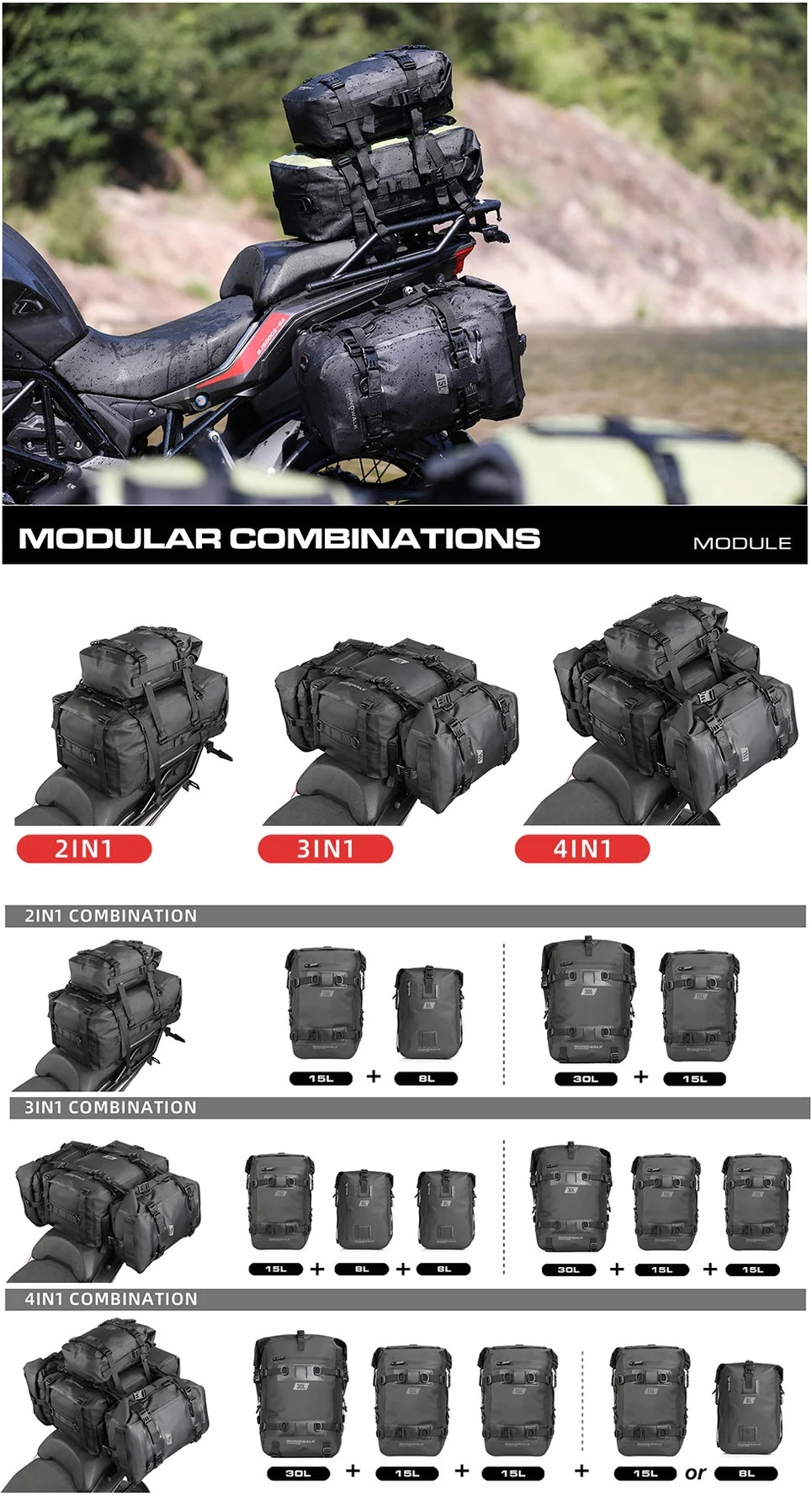 полностью водонепроницаемый: Основной материал водонепроницаемый, резистентная полиэфирная ткань растягивается внутри, водонепроницаемой поверхности и ДНК, сопротивляется износу и легко очищать. 100% водонепроницаемая ткань и бесшовные суставы выдерживают сильные дождь и даже короткое погружение во время быстрого вождения.