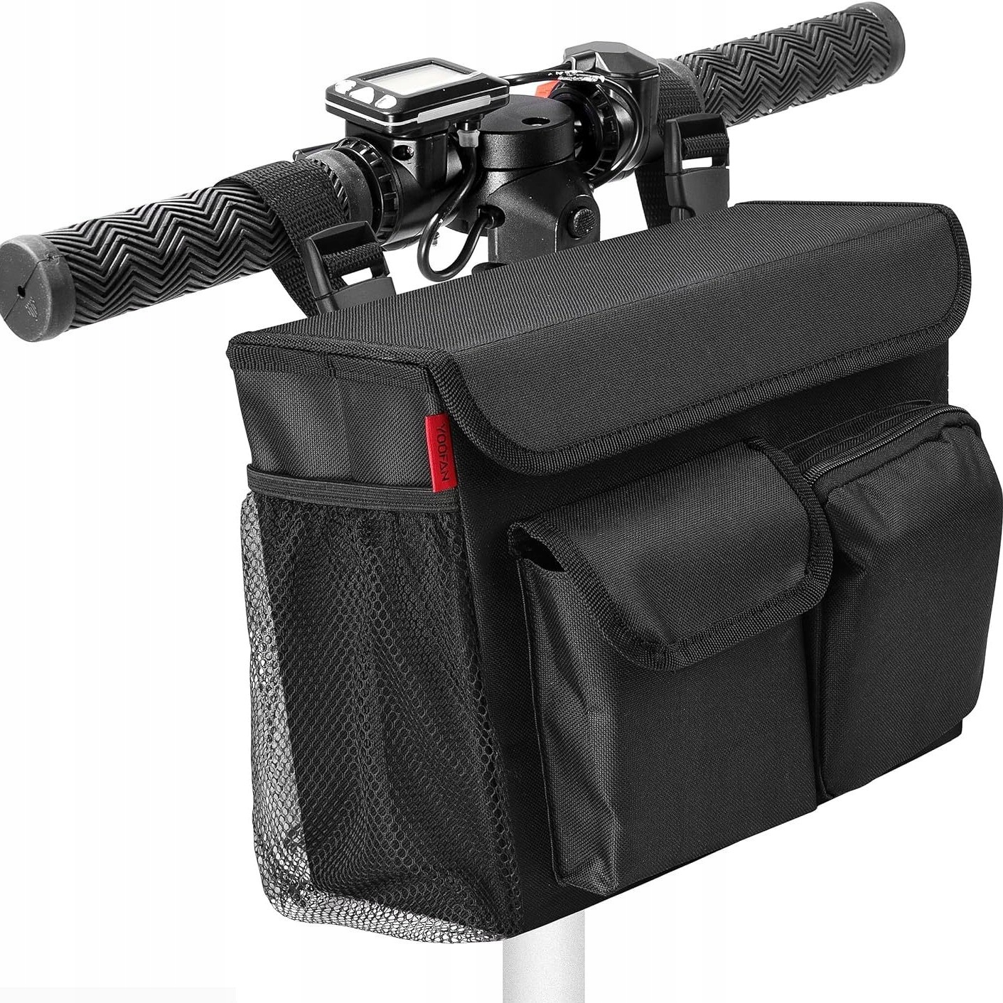 ✅ Универсальность — подходит к большинству рулей и рам благодаря гибкой системе крепления на липучке или ремешке.