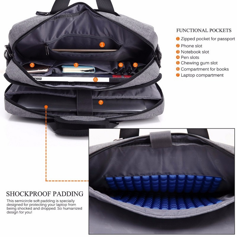 p>b> для ноутбука размером до 17,3 дюйма от COOLBELL с символом CB-5501. Очень качественно сделанная и продуманная сумка для ноутбука. Простой дизайн. Изготовлен из прочного и водонепроницаемого материала - нейлона. Имеет два отделения и множество полезных карманов, в которых можно разместить все необходимые вещи. В одном отделении есть застежка-липучкакарман для ноутбука до 17,3 и много места для папок и документов.Карман для ноутбука подбит специальным поролоном, но лучше защитите ваше устройство от ударов и ударов. Во втором отделении есть >карман для планшета до 10 и хорошо организованные карманы для пауэрбанка, ноутбука, кошелька, ручек и даже жевательной резинки. И то, и другое Отделения застегиваются на цельнометаллические молнии.Снаружи сумки имеется один карман на молнии для мелочей. Сумку можно носить на плече (ремень подвешивается на прочные металлические карабины) или в руке (двойная застегивающаяся ручка удобно лежит в руке). Сняв лямки, его можно носить на спине, как обычный рюкзак. И плечевые лямки, и боковую ручку сумки можно спрятать, чтобы они не мешались при переноске. На одной стенке вшит широкий нейлоновый ремень, благодаря которому сумку можно устойчиво разместить на ручке полетной сумки. Сумку/рюкзак COOLBELL CB-5501 мы особенно рекомендуем людям из делового мира, она проста, элегантна и функциональна.