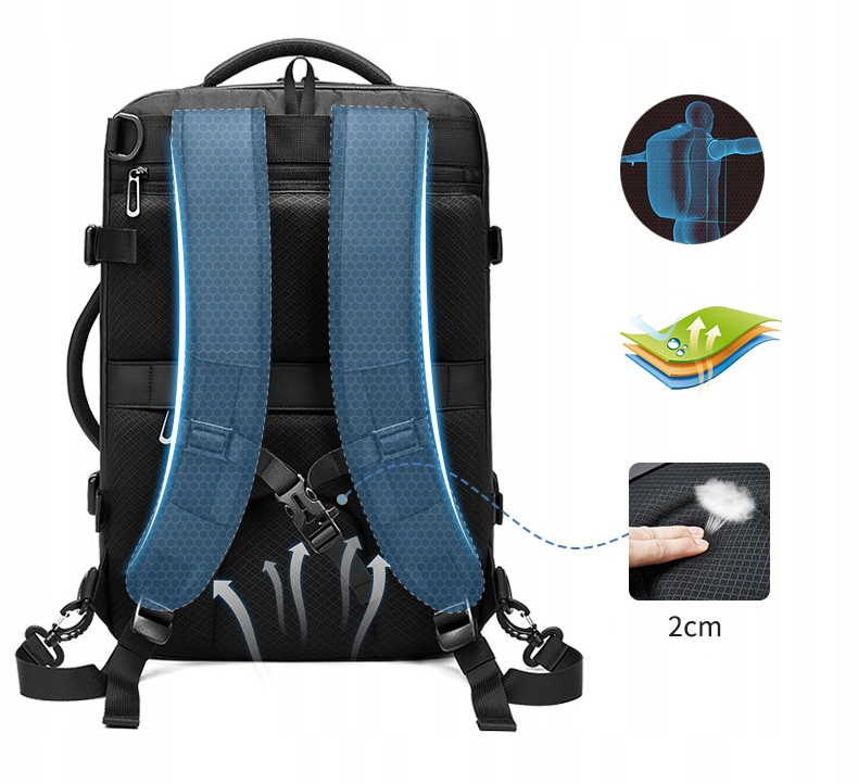 Три -хамберный рюкзак из outwalk символа al1020 изготовлен из прочных и водонепроницаемых оксфордских и ПВХ материалов, которые эффективно защищают содержание от шлифования. Этот рюкзак отличается очень функциональной конструкцией - благодаря возможности открытия средней камеры в качестве чемодана , упаковка вещей в рюкзак определенно удобнее. Дополнительным преимуществом рюкзака является возможность быстрого увеличить его на 10 см , распространяя замок, работающий по всему периметру. В камере в задней части рюкзака есть мягкий карман для 15,6 "ноутбука , защищенный лентой на липучке и меньший карман . В просторной центральной камере есть пространство для упаковки одежды с разделами сетки и водонепроницаемой карман. Защищенный от неконтролируемого распространения с помощью дополнительных полос с сильными пряжками, на брекетах, чтобы лучше распространить вес рюкзака. Belt , благодаря тому, что вы можете поместить рюкзак на ручку подушки безопасности . брекеты могут быть легко спрятаны в специальном кармане на спине, , и их установка очень быстрая благодаря специальным карабинерам. Модель AL1020 Рекомендуется для людей, которые ищут рюкзак с возможностью увеличения его и возможности использования в качестве вместительного ручного багажа .