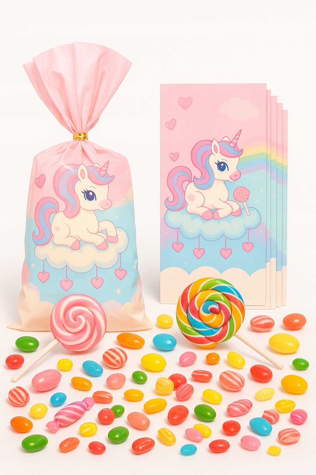Добавьте в свое мероприятие акцент сказочного акта с очаровательными целлофановыми мешками с мотивом дня рождения!