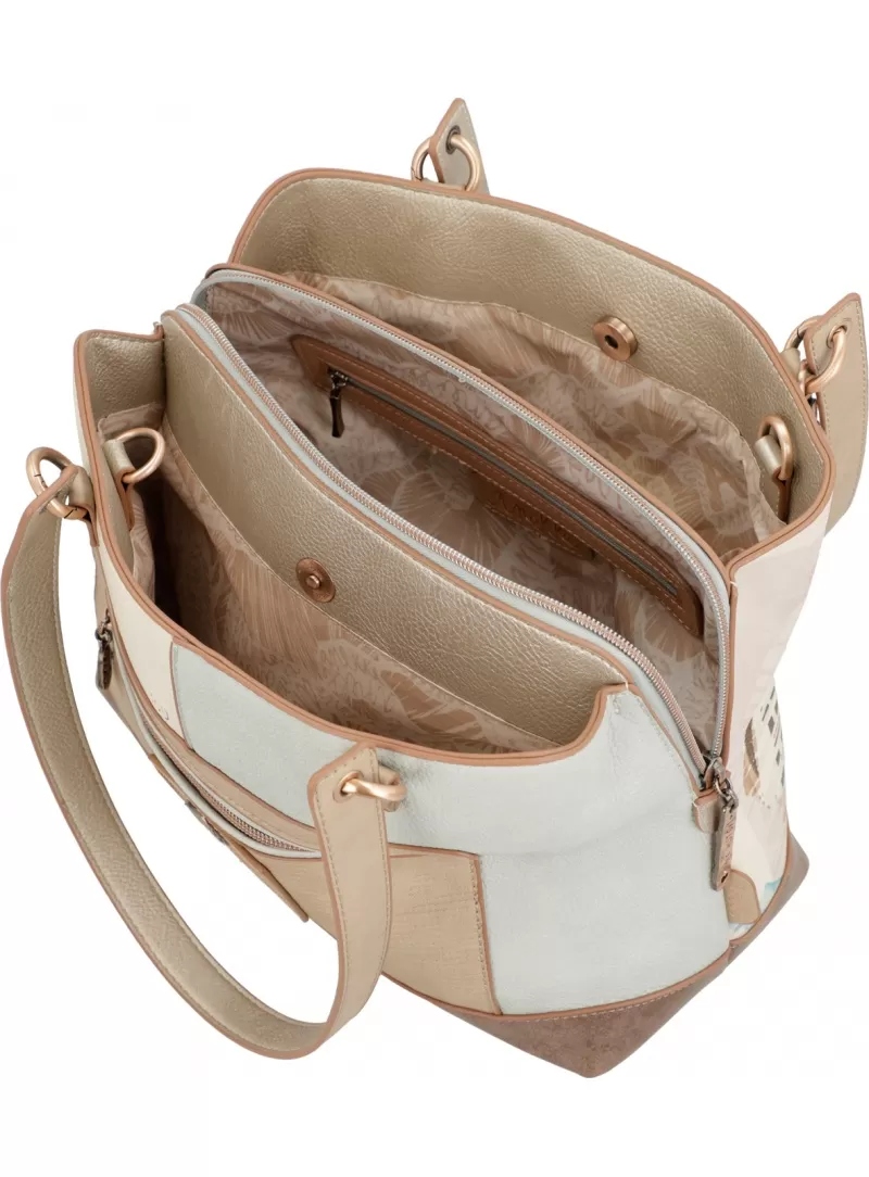 Эта сумка из линии Passion входит в коллекциюAnekke Коллекция Hollywood отличается нежными оттенками, объединенными в разные блоки, вырезами и вышивкой, создающими объем на оригинальных принтах. Эта оригинальная сумка сочетает в себе разную технику с каждой стороны: раскрой и вышивку спереди и сзади с надписью, что позволяет использовать ее с обеих сторон.