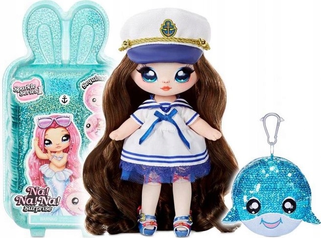 Очаровательный Sailor Blu напоминает круиз на эксклюзивном корабле. Ее наряд сам по себе подходит моряку. Она одета в очаровательное платье с морскими элементами. На длинных каштановых волосах у него капитанская фуражка. Она также носит очаровательные туфли, которые станут отличным дополнением к ее наряду. Кукла заключена в мешочек, полностью усыпанный блестящими блестками. Также в комплект входит бирка с именем, днем рождения и некоторой информацией о Сейлор, а также сумка в форме очаровательного расшитого блестками кита с зажимом, который можно прикрепить к рюкзаку, сумочке или пеналу.