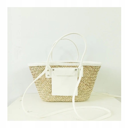 ЛЕТНЯЯ ПЛЯЖНАЯ КОРЗИНА, СОЛОМА ЛЮКС, БЕЛАЯ
