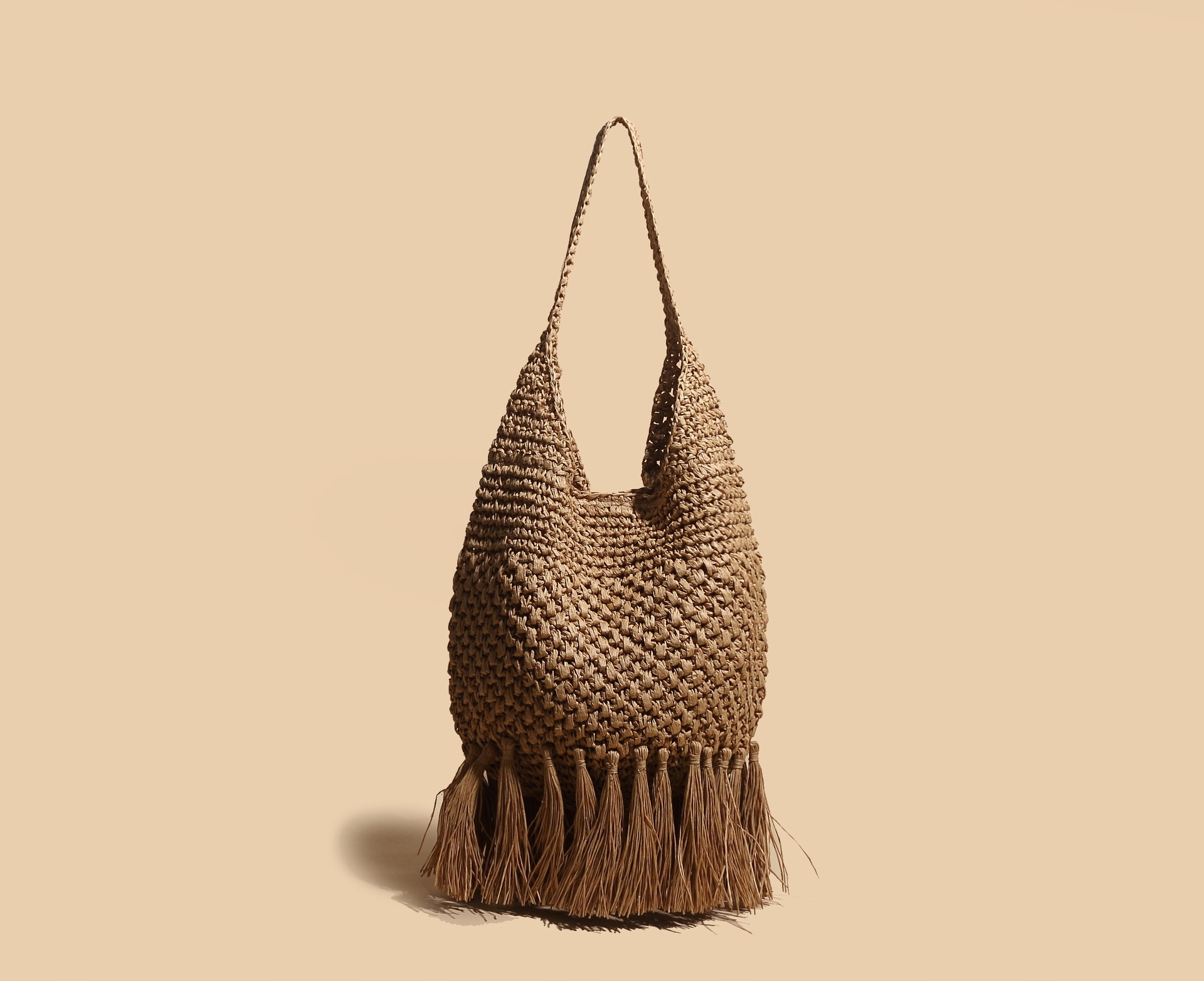 ПЛЯЖНАЯ СОЛОМНАЯ СУМКА СУМКА С БАХОЧКОЙ В БОХО