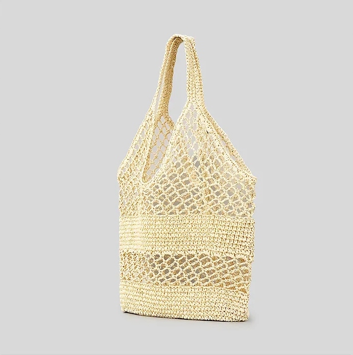 Мешок мешка из соломенного пляжного покупателя A4 Paris Milano Beige