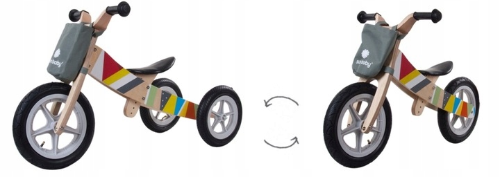 Уникальный беговел для ребенка. В начале велосипедного приключения малыш едет на трех колесах, которые обеспечивают устойчивость и предотвращают опрокидывание.