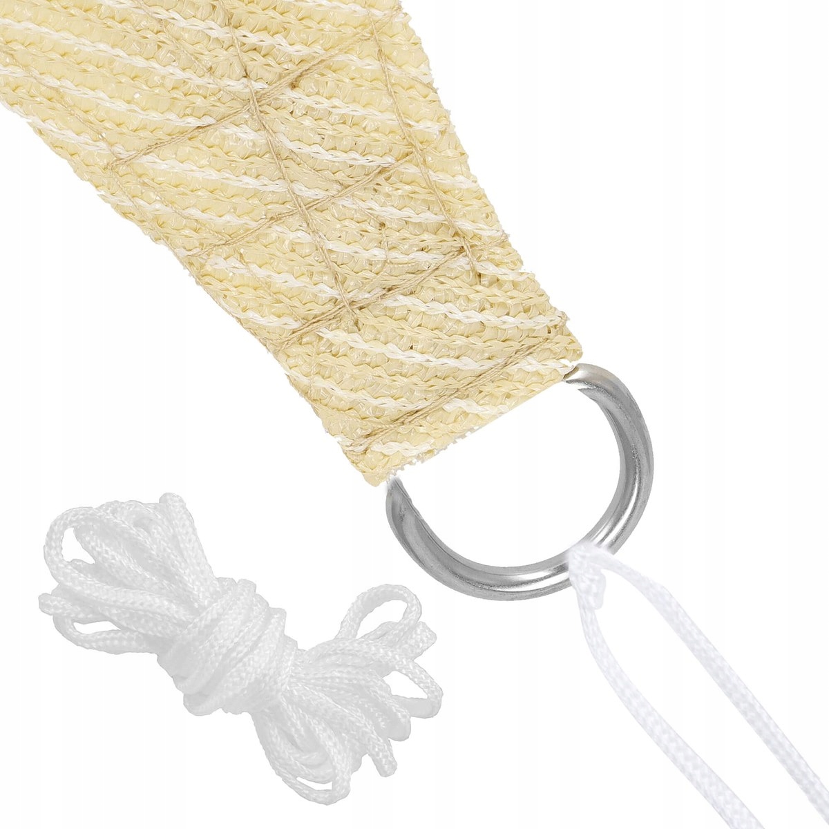 Парус оснащен кольцами из нержавеющей стали на каждом из углов материала, благодаря чему его легко установить очень просто. Просто прикрепите его с помощью веревок, включенных в набор.