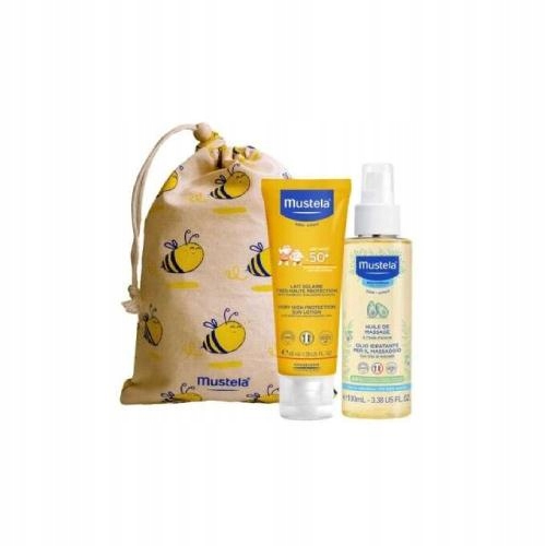 Набор MUSTELA Baby on go, сухая кожа, солнцезащитное молочко SPF 50+, 40 мл + массажное масло, 100 мл.