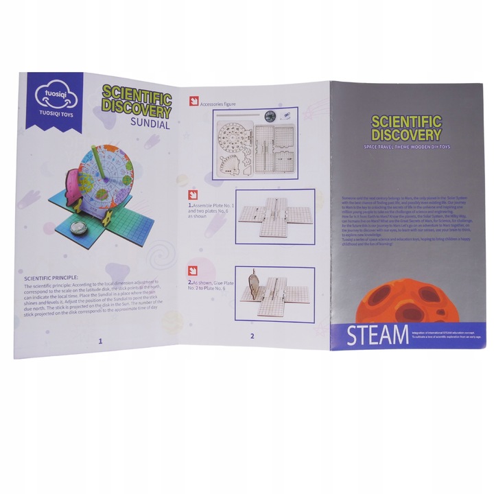 Солнечные часы: После складывания часов поместите его в солнечное место и уровень. Благодаря инструкциям, выполните шаг за шагом, чтобы выяснить, как работают часы и каково время суток.
