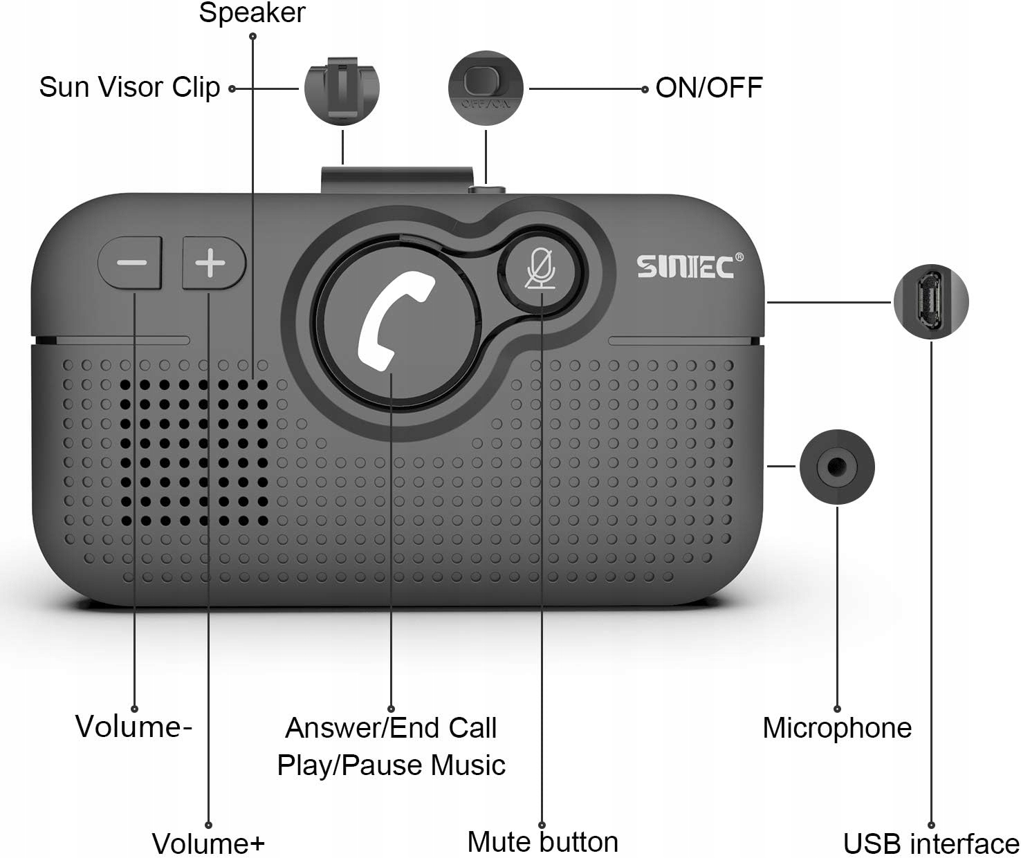 Комплект громкой связи SUNITEC Bluetooth для мобильных телефонов был разработан специально для тех, кто ценит бесплатные, неограниченные и практичные возможности связи.