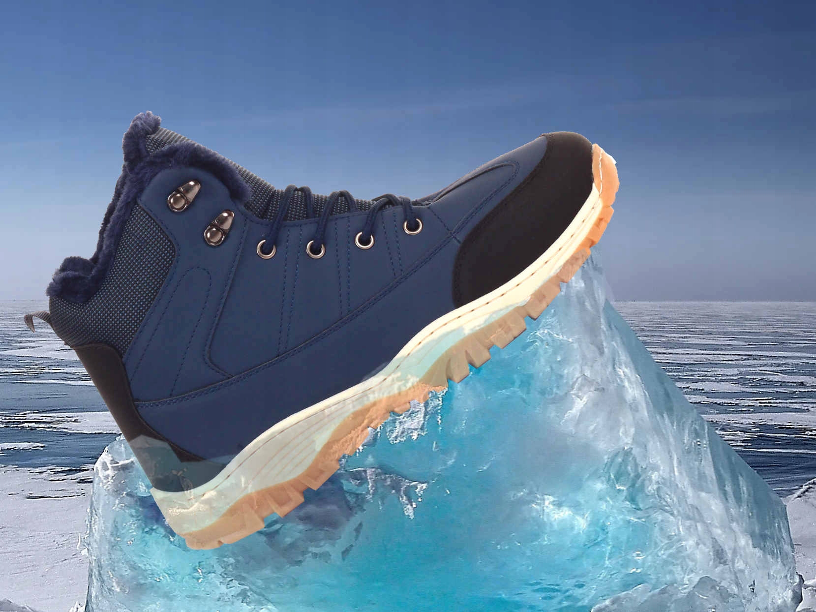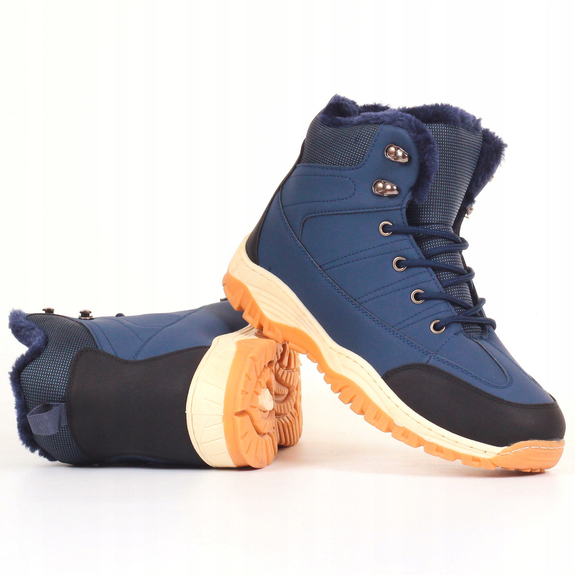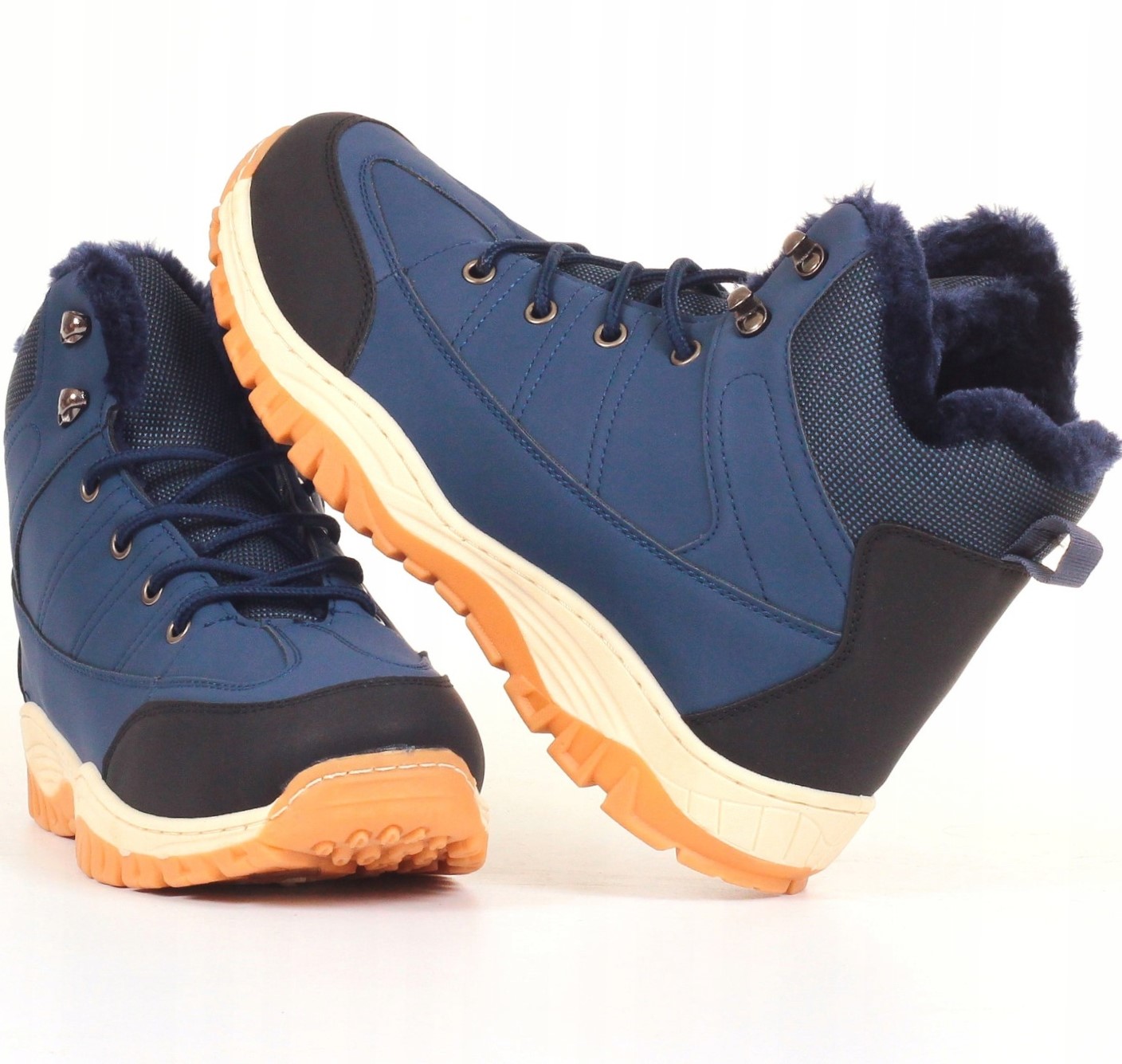 Мужская утепленная зимняя обувь, темно-синего цвета, изготовлена из высококачественных материалов. Шнуровка регулирует ширину обуви. Высокий верх обеспечивает устойчивость. Подошва проклеенная, что обеспечивает долгий срок службы. Он полностью утеплен мягким мехом, идеально подходящим для холодных дней. Противоскользящая подошва с протектором улучшает амортизацию стопы.