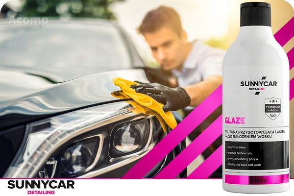 sunnycar Детализация Glaz 500 мл - политический лак, готовящий лак перед нанесением воска. Идеальная восковая основа, которая помогает очистить лак, маскировать небольшие функции и получить глубину цвета. Листья влажного сияния и значительно расширяет жизнеспособность воска