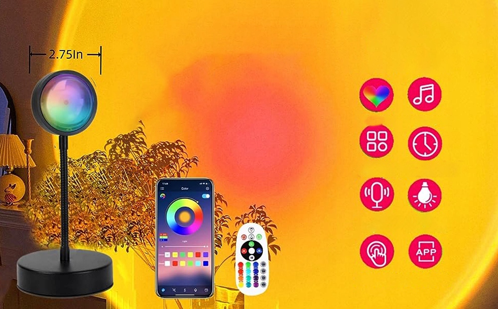 - Лампа заката имеет двойные функции управления с помощью пульта дистанционного управления и приложения,