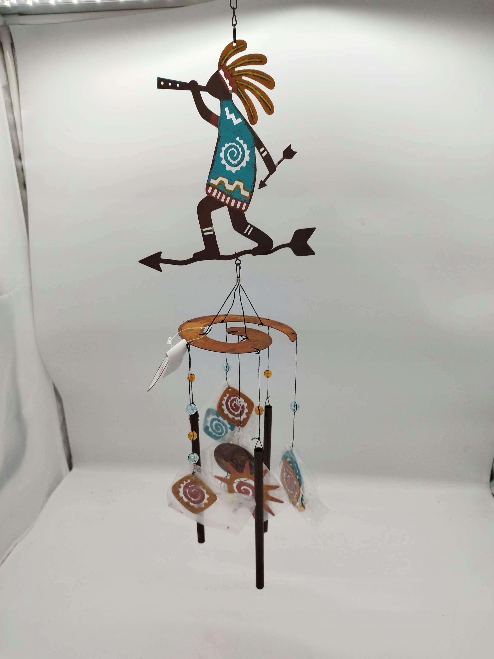 Металлический куриный колокол ручной работы Кокопелла идеально подходит, чтобы добавить немного юго -запада к вашему дому. Kokopella стоит на кривой выстрела, играя на флейте, чтобы напугать зло, помощь в рождаемости, успеха охоты и хороших культур. Тонкий гудящий звук создается благодаря 3 металлическим колоколам, 3 перцем чили и 3 металлическим солнцезащитным кремам, которые влияют с каждым ветерком, пойманным ветряной мельницей El Sol. Высокие с бусинками сияют на солнечном свете. Он измеряет около 21,5 х 13 см и 95 см в высоту и содержит легкий металлический улов. Металлический колокол был спроектирован так, чтобы ржаветь со временем, подчеркивая деревенское очарование.